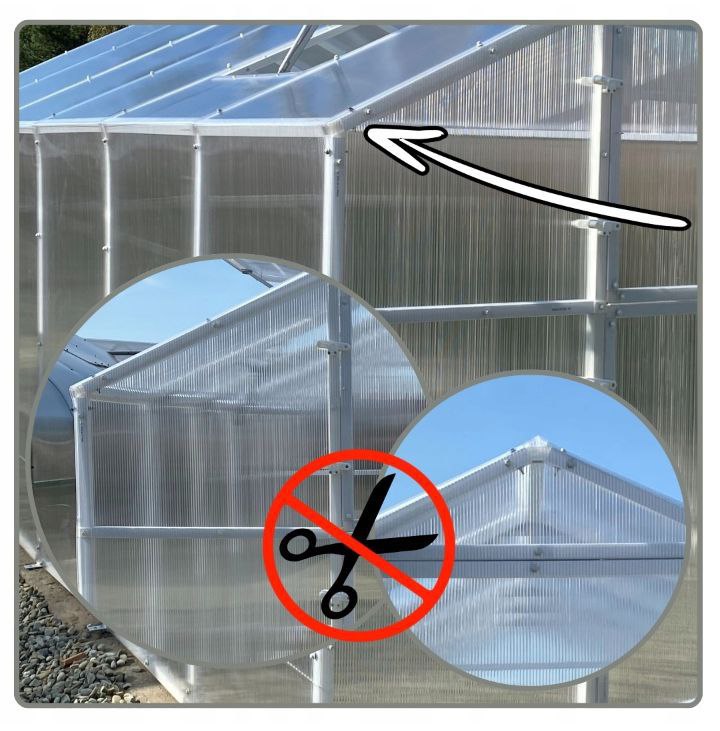 Mocowanie do konstrukcji – dzięki temu, że poliwęglan jest przykręcany do konstrukcji mamy gwarancję, że nie ulegnie on oderwaniu nawet przy silniejszych podmuchach wiatru ( co często ma miejsce przy innego typu mocowaniach np. na klipsy, zatrzaski, listewki itp). W naszych szklarniach na jedno przęsło przypada jedna płyta poliwęglanowa, dzięki temu mamy gwarancję, że nawet silniejszy podmuch wiatru nie „wepchnie” płyty do środka szklarni. Mocowanie płyt do konstrukcji na zakładkę dodatkowo wzmacnia punkt mocowania dzięki podwójnej warstwie płyty poliwęglanowej.